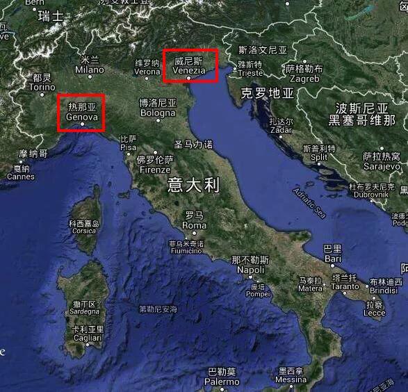 我们看一下威尼斯的地理位置,很明显,具有海上贸易的潜力,也正因为此,威尼斯逐渐成为当时的贸易中心。